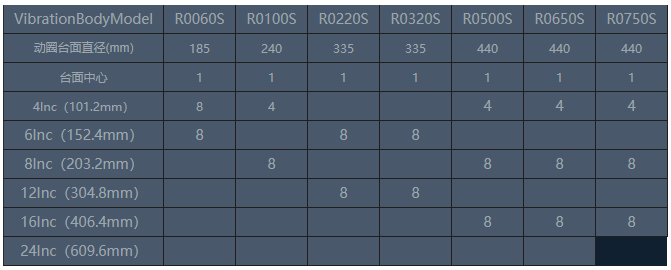 圓形擴(kuò)展臺(tái)具有良好的頻響特性,其臺(tái)面螺釘分布符合上表標(biāo)注尺寸