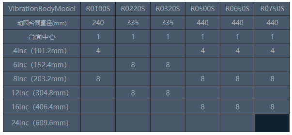 圓形擴(kuò)展臺具有良好的頻響特性,其臺面螺釘分布符合上表標(biāo)注尺寸。